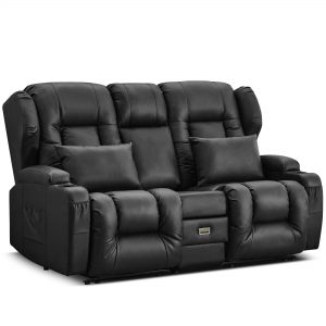 URRED Loveseat Recliner Sofa with Flipped Backrest Console, RV Manual Reclining Loveseat Couch Home Theater Seating with Cup Holders/Side Pockets/Pillows/Drawers/Outlets for Living Room, Black quantity