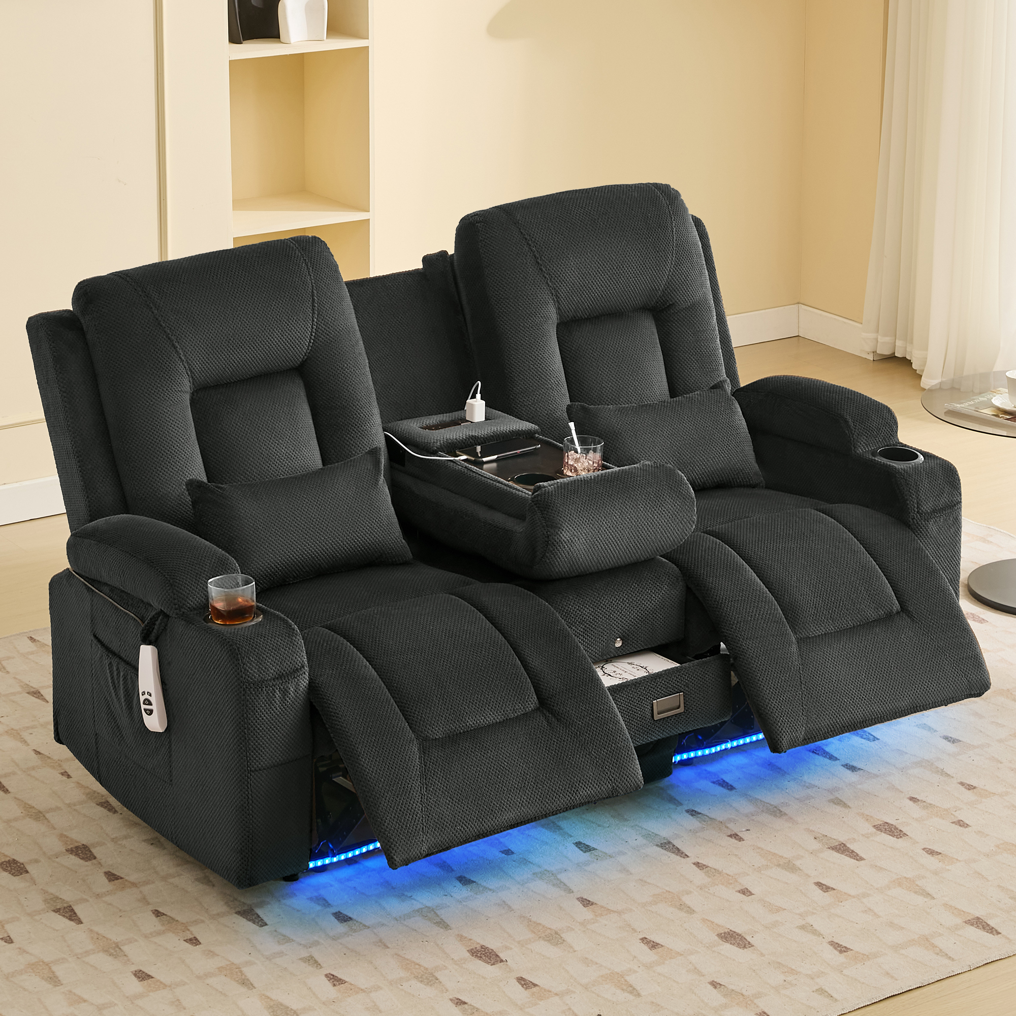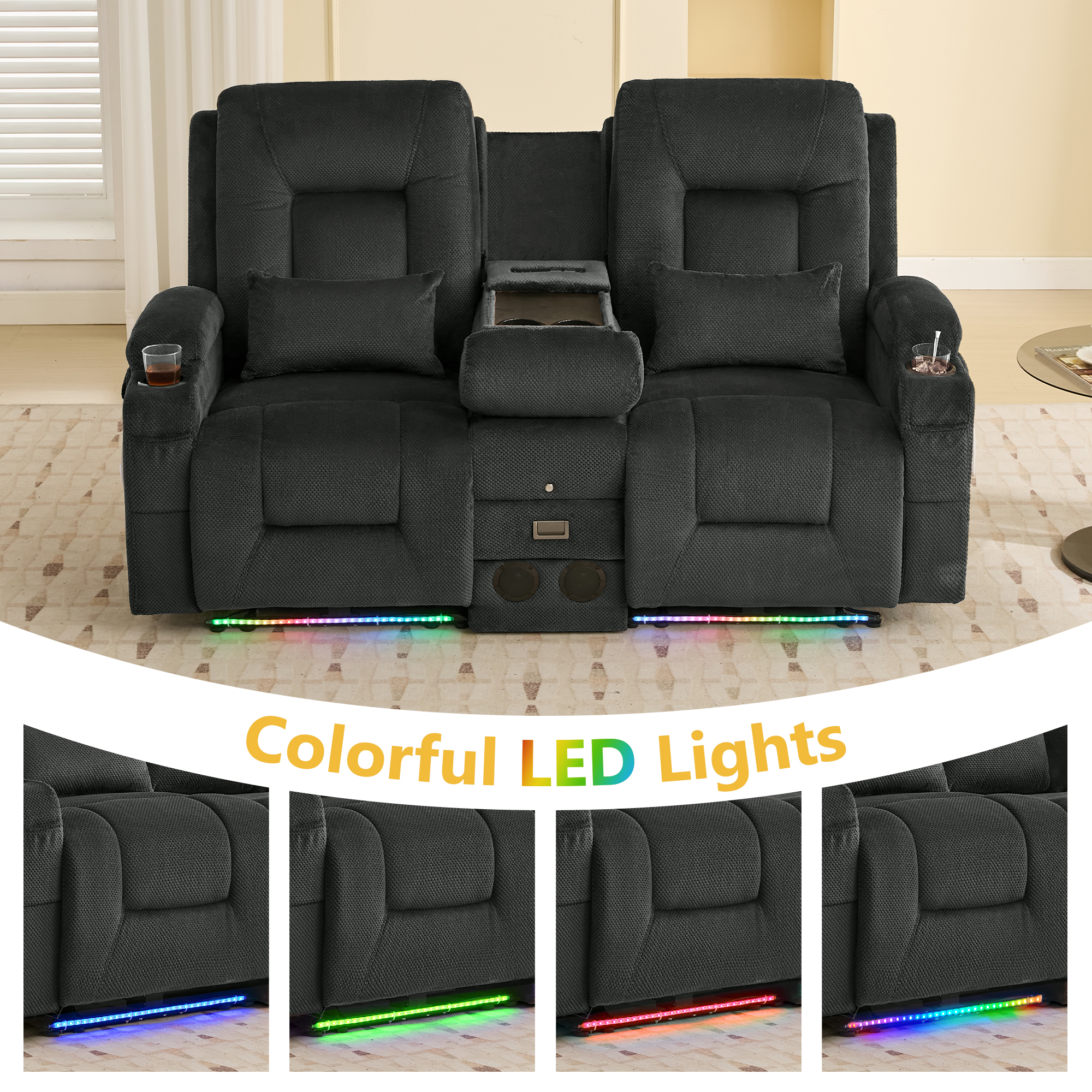 URRED Power Loveseat Recliner Sofa with Flipped Backrest Console, Wall Hugger RV Reclining Loveseat Sofa Couch with LED Light/Bluetooth Speakers/USB/Outlets/Cup Holders/Pillow/Side Pocket, Gray