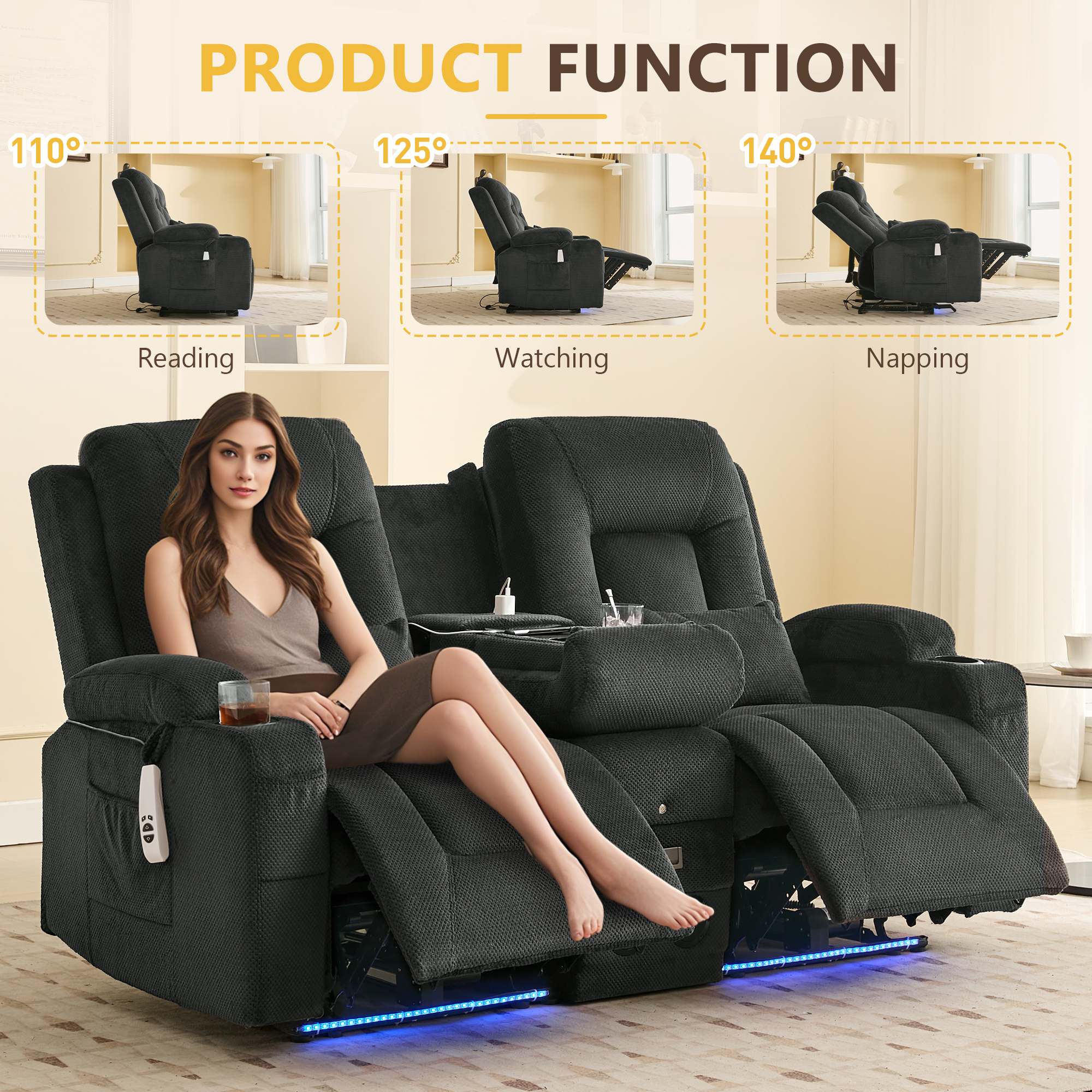 - Electric Reclining Assistance: This loveseat sofa features a split backrest design, and each seat is equipped with an independent remote control, which allows you to easily and infinite position adjust the footrest and backrest to your preferred tilt angle. Maximum tilt angle: 140°.