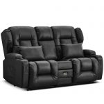 “URRED Loveseat Recliner Sofa with Flipped Backrest Console, RV Manual Reclining Loveseat Couch Home Theater Seating with Cup Holders/Side Pockets/Pillows/Drawers/Outlets for Living Room, Black” has been added to your cart.